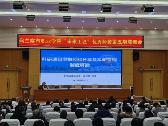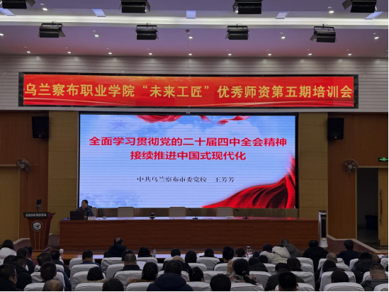 为深入贯彻落实教育强国战略,持续强化师资队伍建设,乌兰察布职业学院于2026年1月13日至14日成功举办第五期“未来工匠”优秀师资培训会。学院党委委员、组织人事部部长陈彩霞主持开班仪式并作动员讲话,全院教师参加了为期两天的集中培训。