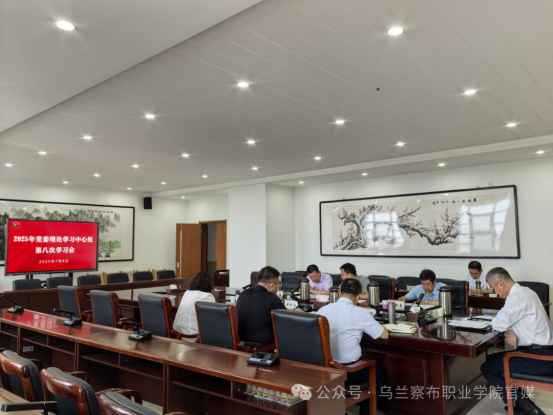 2025年7月9日,乌兰察布职业学院召开2025年党委中心组第八次学习会。学院党委书记郭晓东,党委副书记、院长顾建峰,党委副书记梁建龙,党委委员、副院长郝伯为,党委委员、副院长白永平,党委委员、组织人事部部长陈彩霞,党委委员、宣传统战部部长章晟参加会议。党委书记郭晓东主持会议并发表讲话。